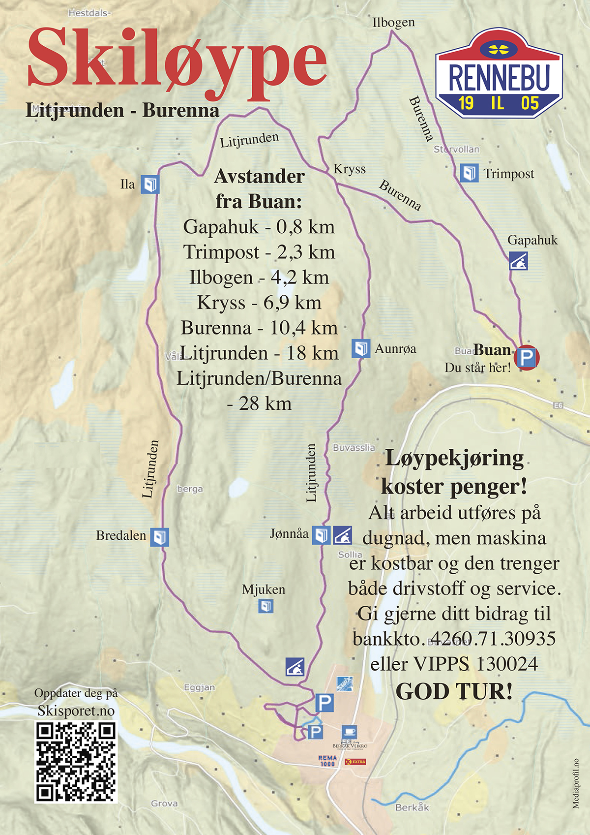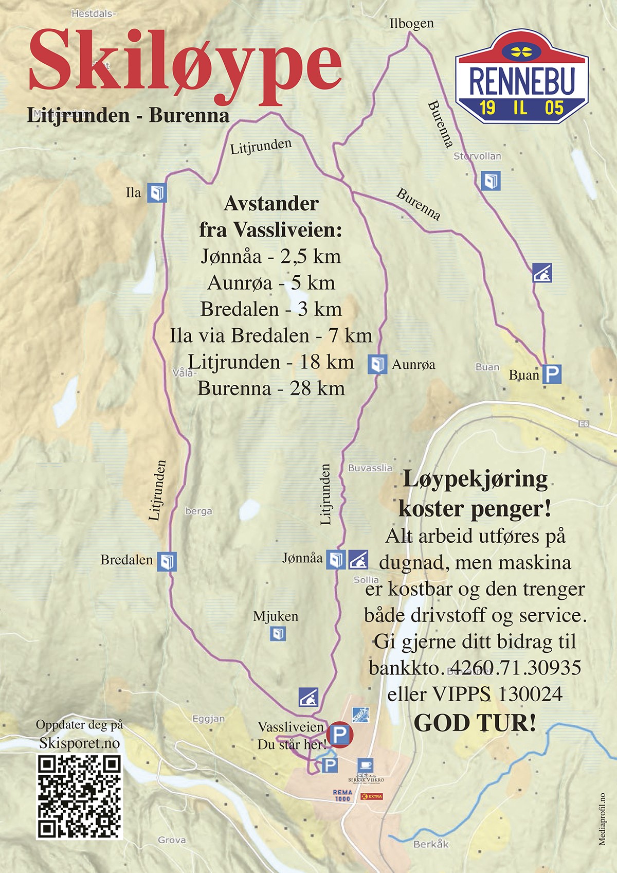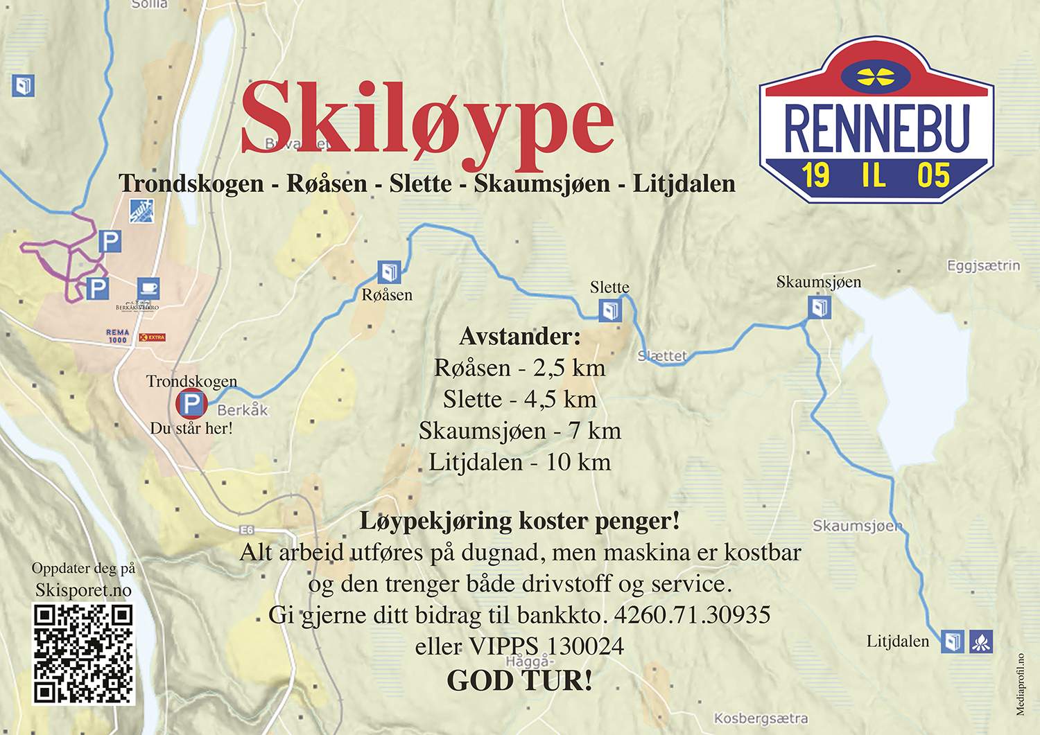 Løypene kjøres opp i regi av Innset IL, Rennebu IL, Furusjøen-Hestvantet Løypeforening, Gisnadalen Løypeforening, Nerskogen Løypeforening og Rennebu kommune.
