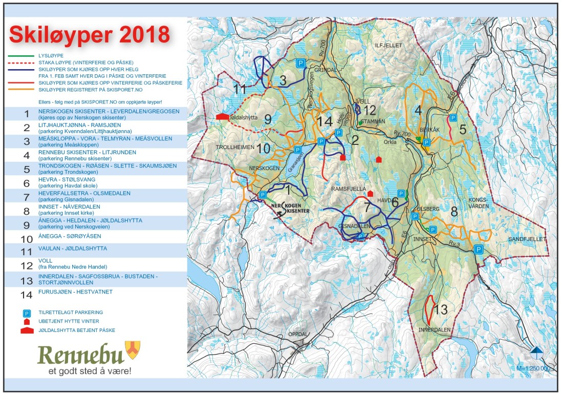 Kartet Skiløyper 2018 viser skiløypene slik de var i 2018, men løypene går stort sett etter samme traseer!